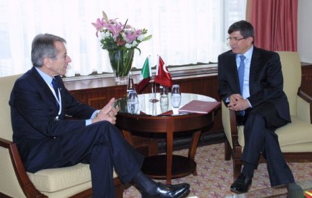 İstanbul’da bugün yapılan Türkiye -İtalya 8. forumu sonrasında konuk Dışişleri Bakanı Giulio Terzi di Sant'agata ile kameraların karşısına geçen Davutoğlu, Suriye yönetiminin ülkedeki şiddetin durması adına Arap Ligi tarafından iyi niyet amacıyla hazırlan protokolü bir an önce imzalaması gerektiğini kaydetti.