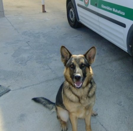 Detektör köpek Alf, Türkiye'ye giriş yapmakta olan Suriye taksisinde zula edilmiş 320 paket sigara yakalattı.