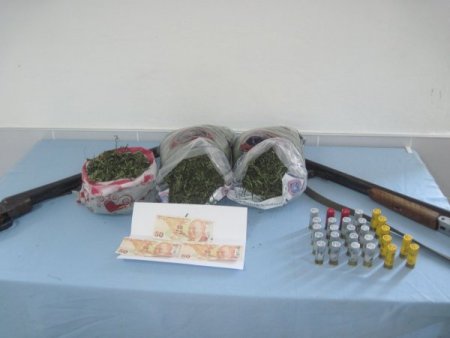 Bir ihbarı değerlendiren jandarma ekipleri, Narkotik köpeği Vida ve bomba arama köpeği Roka ile birlikte yaptığı aramada H.D.'nin (65) evinde bin 88 gr. esrar, torunu Ü.D.'nin (26) evinde ise 200 gr. esrar ve 3 adet sahte 50 liralık banknot ele geçirdi. Ayrıca 2 adet ruhsatsız av tüfeği ve bunlara ait 27 adet fişek bulundu. H.D. ifadesi alındıktan sonra serbest bırakılırken Ü.D. tutuklandı. CİHAN