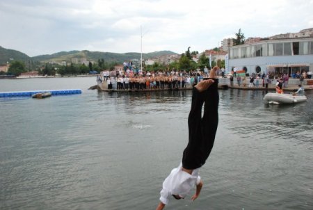 45 öğrencinin alkışlar içerisinde diplomalarını denizden almasının ardından tüm öğrenciler denize atlayarak mezuniyet sevinçlerini Türk bayrağı açarak kutladı. CİHAN