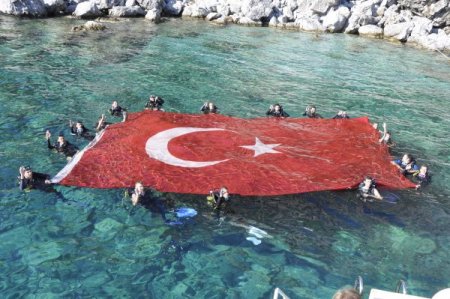 Muğla'nın Marmaris ilçesinde Cumhuriyet Bayramı dolayısıyla bir grup dalgıç, denizin dibinde Türk bayrağı açtı. Bayram, Muğla Paradise Diving Dalış Topluluğu tarafından su altında kutlandı. Çoğunluğunu Muğla Üniversitesi öğrenci ve öğretim üyelerinden oluşan topluluktan 20 kişi, Akdeniz ile Ege’nin kesiştiği Marmaris açıklarında daldı.