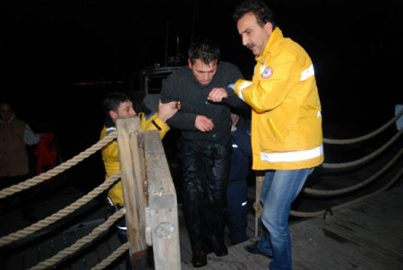 Suya atılan simide tutunan Günay, bottan atılan ipi de beline doladı. Günay, ip yardımıyla zor da olsa polisler tarafından bota çekildi.