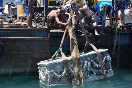 Antalya’nın Alanya ilçesi Okurcalar beldesinde bulunan antik Justinianopolis antik kenti yakınlarında deniz içerisinde Roma döneminden kalma MS 2. veya 3. yüzyıla ait büyük bölümü medusa ve eros figürleri işlenmiş lahit bulundu. Çevresinde 1 ve 3’üncü derece sit alanı Justinianopolis antik şehri bulunan lahitin çıktığı Karaburun mevkiinde tatil yapan yüzlerce turistte lahitin çıkartılmasını izledi.