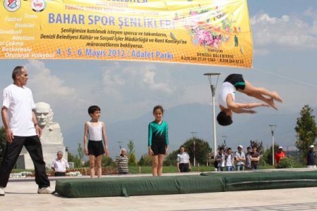 Bahar Spor Şenlikleri’nin açılış töreni ise Adalet Parkı’nda gerçekleştirildi. Törende İsmail Tosunoğlu İş Eğitim Merkezi Mehteran Takımı, ile farklı okullardan gelen öğrenciler halk oyunu ve jimnastik gösterileri gerçekleştirdi. Başkan Zolan, burada yaptığı konuşmada da şenliklerle herkesi spor yapmaya teşvik edildiğini belirterek, “Bahar şeniliği ve herkes için spor her yıl geleneksel hale gelecek. Her türlü kısıtlamalara rağmen engelli çocuklarımızı spor yapabilir hale getirmek gerekir. Çocuklarımızı o internet denen sanal dünyadan spor yaptıkları gerçek aleme getirmek gerekiyor. Şükürler olsun ki artık Denizlimizden gidebileceğimiz çok güzel parklarımız var. Bugün Denizli Avrupa kriterlerinin üzerine çıkmış durumdadır. Kişi başına 10 metrekare yeşil alan var. Bu Avrupa’da bile birçok şehirde yok. Artık herkes bu yeşil alanlarda spor yapmalıdır. Denizli’de yaşayan herkes parkları kullanmalı ve sahip çıkmalıdır. Bu nedenle bahar şenliklerini önemsiyoruz.” diye konuştu.