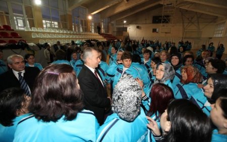 Belediye tarafından hediye edilen eşofman takımlarını giyen hanımlara sabah sporundan önce kısa bir konuşma yapan Başkan Zolan, kursa gösterilen ilginin memnuniyet verici olduğunu ifade etti. Sağlık olmazsa hayatta hiçbir şeyin önemi kalmadığını belirterek, “Sağlıklı bir yaşamın yolu ise spordan geçiyor. Bizim nazarımızda hanımlar çok değerli. Sizin için ne yapsak hakettiğinizi düşünüyoruz. Her an yanımızda olan sizsiniz. Toplumun yükünü sırtlanan, üreten, aileyi birarada tutan sizsiniz. Bunca fedakârlığa karşılık hanımlar için özel uygulamalar yapmamız gerektiği düşüncesiyle böyle bir kurs açtık. Yaklaşık 850 kişi, sağlıklı yaşam için bu kurslara katılıyor. Uzmanlar tarafından belirtildiği gibi belli bir yaştan sonra hanımların spor yapması daha da önemli.” şeklinde konuştu.