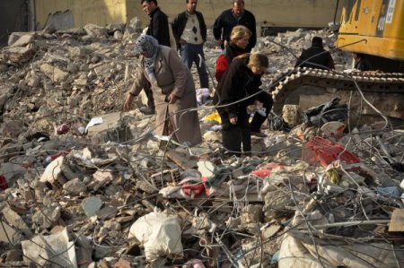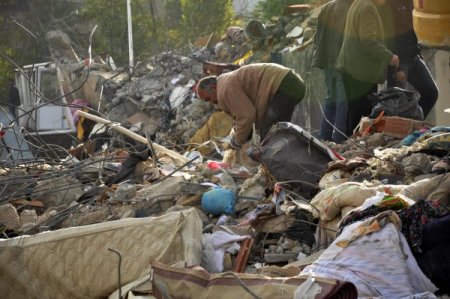 Deprem bölgesinde enkaz yığınlarında eşyalar..
