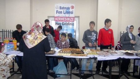 Batman'da Fen Lisesi öğrencileri Van Edremit Fen Lisesi’nden gelen depremzede öğrenciler yararına kermes düzenledi.