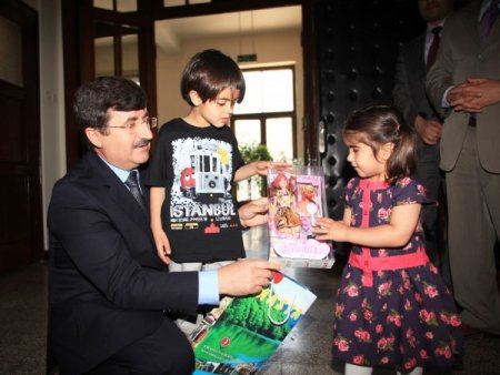 Vali Öz, ziyaret sonunda depremzede çocuklara oyuncak hediye etti. CİHAN
