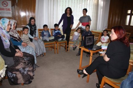 Zonguldak Halk Sağlığı Müdürlüğü'ne bağlı Toplum Sağlığı Merkezi'nde görevli hemşireler, 7. Aşı Haftası etkinlikleri kapsamında kentte yaşayan Vanlı depremzedeleri aşı konusunda bilgilendirdi.