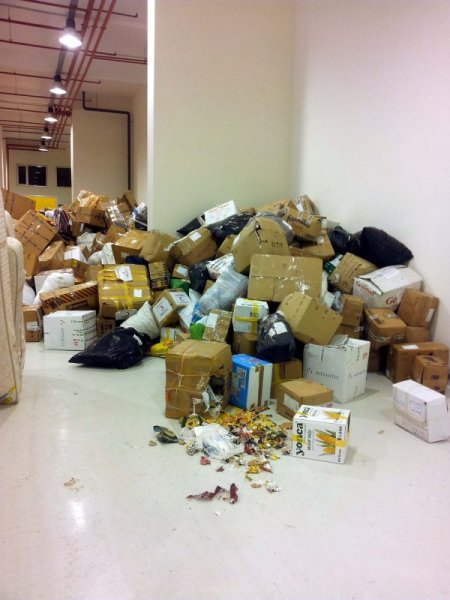 Van’da yaşanan deprem felaketinin ardından toplanan bazı yardımların afet bölgesine gönderilemediği ortaya çıktı. Hadımköy’de kargoyla Van’a gönderilmek üzere PTT’ye teslim edilen yardım kolilerinin kuruma ait garajda istiflendiği ve buraya giren köpeklerin kolilerini parçalayarak yiyecekleri etrafa saçtığı iddia edildi. PTT yetkilileri ise, Van Valiliği’nin ellerindeki sevkiyatı eritebilmek için yardım kamyonu talebini kestiğini söyledi.