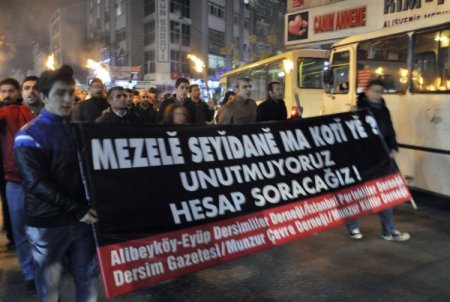 1937–1938 yılları arasında Tunceli’de (Dersim) çıkan olayları ve bu olaylara sebebiyet veren yetkilileri protesto eden 60 kişilik grup, Gazi Mahallesi’nde meşaleli yürüyüş yaptı. Sorumlularının ortaya çıkarılmasını isteyen grup, açıklamanın ardından olaysız dağıldı.