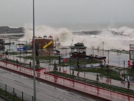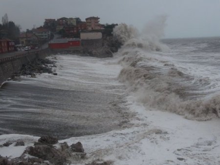 Zonguldak’ta, Kozlu Sahil yolunu vuran dalgalar trafiği aksattı. Fırtına nedeniyle oluşan dev dalgalar limanı aşarak metrelerce yüksekliğe ulaştı. Bu arada limana sığınan Ersin ve Ergin Arslankaya kardeşlere ait balıkçı teknesi battı.