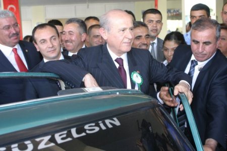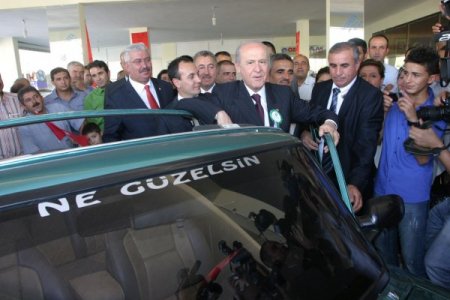 Osmaniye Belediyesi tarafından yapımı tamamlanan Galericiler Sitesini ziyaret eden MHP Genel Başkanı Devlet Bahçeli, modifiye edilmiş 1972 model Murat 124 ile poz verdi. Murat 124’ün direksiyonuna geçen Bahçeli, otomobili çalıştırarak gazetecilere poz verdi. Otomobilden inen Bahçeli, bu kez kapıya kolunu dayayarak,”Araba ile böyle verilir”diyerek poz vermesi partililerin gülüşmesine neden oldu.