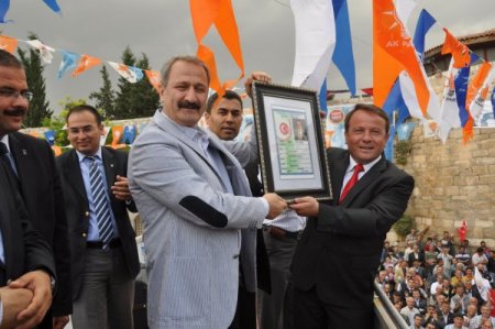 Devlet Bakanı Zafer Çağlayan’a, Mersin’in Mut ilçesinde kendisini Mut doğumlu gösteren çerçeveletilmiş, sembolik nüfus cüzdanı hediye edildi.