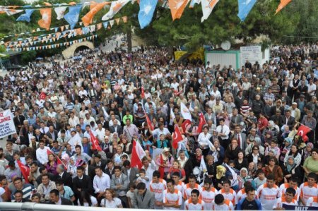 Daha sonra Cumhuriyet Meydanı’nda yaklaşık 4 bin kişiye seçim otobüsünden halka hitap eden Devlet Bakanı Zafer Çağlayan, ilçeye elleri boş gelmediğini dolu olarak geldiğini söyledi. Mersin’i yeniden imar edeceklerini, çalışmalardan Mut ilçesinin de önemli pay alacağını söyleyen Çağlayan, "İlçedeki 20 yıllık CHP’li belediyenin gönderildiğini ve Ak Partinin iktidara geldiğini belirten Çağlayan,”2001 krizinde Türkiye2nin başın ı belaya sokan ANAP-MHP-DSP koalisyonunun davranışları farklıydı. Milletvekilleri ve bakanlarla görüşemezdiniz. Bizde ise tam tersi." dedi.