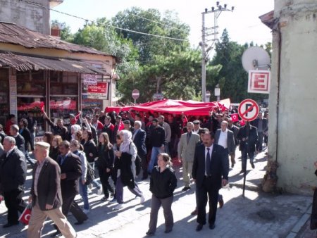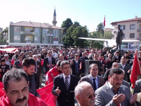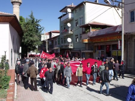 Konuşmanın ardından ilçe merkezinde yapılan yürüyüşte “Şehitler ölmez vatan bölünmez” sloganları atıldı. CİHAN
