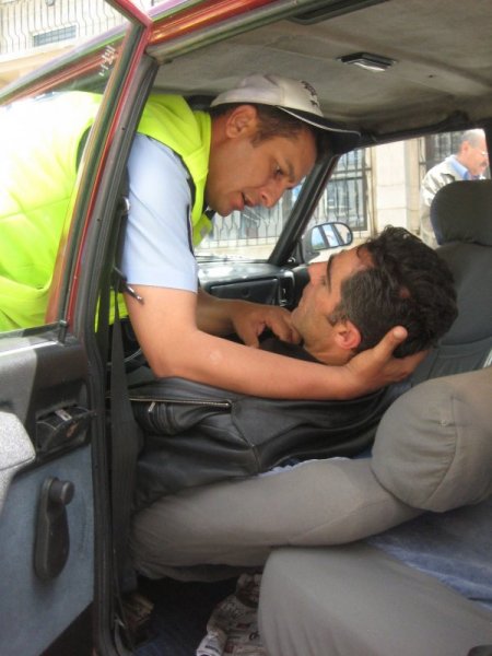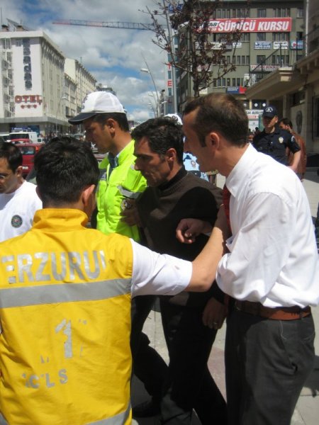 Erzurum'un Yakutiye ilçesi Cumhuriyet Caddesi'nde faciadan dönüldü. Şehrin yaya trafiğinin en yoğun olduğu Cumhuriyet Caddesi'nde öğle saatlerinde otomobiliyle seyir halindeki sürücü İsmail Bayrakçı sinir krizi geçirdi. Krizin etkisiyle Bayrakçı, otomobiliyle Polisevi önündeki kaldırıma çıktı. Otomobil, şans eseri kaldırımda kimseye çarpmadan durabildi. Bu esnada polisevi VIP Salonu önünde nöbet tutan trafik polisi kriz geçiren sürücüye müdahale etti. Trafik polisinin su içirip daha sonra elini ve yüzünü yıkadığı sürücü otomobilinden çıkartılarak Polisevi önünde oturtulup temiz hava alması sağlandı. Bu arada telsizle 112 Acil'den çağrılan ambülansın olay yerine gelmesiyle sürücü Bayrakçı, Palandöken Devlet Hastanesi'ne sevk edildi. Kaldırıma çıkan otomobil ise Bayrakçı'nın arkadaşı olduğunu belirten bir kişi tarafından kaldırımdan indirildi. CİHAN