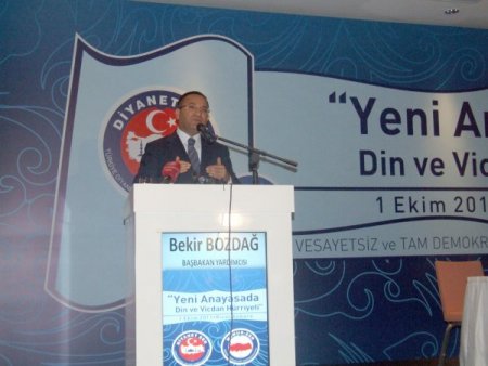 Başbakan Yardımcısı Bekir Bozdağ, panelde yaptığı konuşmasında din ve vicdan hürriyetinin anayasada yer almasından öte temel bir insan hakkı olduğuna dikkat çekerek böyle bir konuda panel düzenlemesinden dolayı Diyanet-Sen’e teşekkür etti. Meclisin en önemli görevinin yeni anayasayı yapmak olduğunu belirten Başbakan Yardımcısı Bozdağ "Meclis tarihi bir dönemde çalışma yapacak, Meclis’in en önemli görevi yeni anayasayı hayata geçirmek olacak. Bu Meclis eğer yeni anayasayı yaparsa tarihe geçecektir. Yeni yasama yılında tarihi bir süreç başlayacaktır.’’ ifadelerini kullandı.