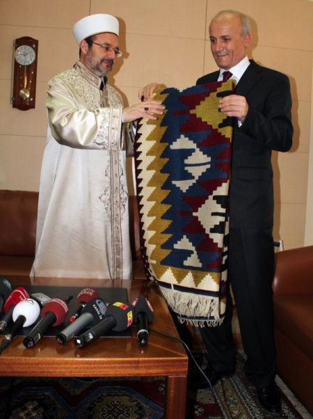 Daha sonra Görmez, Vali Bilici’ye arma ve kitaplardan oluşan hediye sundu. Bilici de Diyanet İşleri Başkanı Görmez’e halı hediye etti.