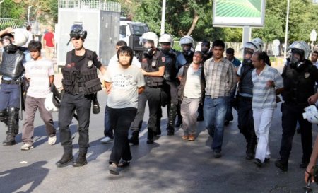 Parkta toplanan vatandaşları bölgeden uzaklaştıran polis ile BDP’liler arasında gerginlik yaşandı. BDP Genel Başkanı Selahattin Demirtaş, görevli polis müdürüne ‘Beni buradan çıkaramazsınız’ demesi üzerine polis görevlisi “Sizinle konuşmuyorum” diyerek yanlarından ayrıldı. Bu sırada polise tepki gösteren BDP Van Milletvekili Özdal Üçer’i BDP’liler sakinleştirmeye çalıştı. Polis kendisine taş atanlara yönelik yaptığı çalışmada 63 kişiyi gözaltına aldı. CİHAN