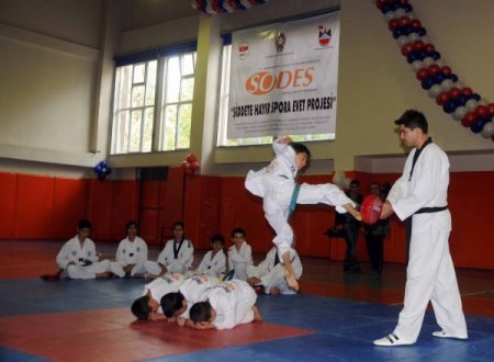 Törende konuşan Diyarbakır Valisi Mustafa Toprak, SODES projelerinin önemine değindi. Diyarbakır Emniyet Müdürü Mustafa Sağlam ise yürüttükleri proje hakkında bilgi verdi. Sağlam, “Proje kapsamında ilimizde ilköğretimde ve ortaöğretimde okuyan çocukların sporla ve sanatla tanışmaları, iyi birer sporcu ve sanatçı olarak hayatta daha başarılı olmaları amacıyla, (Basketbol, Voleybol, Hentbol, Atletizm, Satranç, Çim Hokeyi, Karate, Tekvando, Judo, Bağlama, Gitar, Ney) 580 çocuğun katıldığı sportif ve kültürel aktiviteler düzenlenmiştir. Kurslara katılan 352 çocuğumuzun ihtiyaçları SODES projesi kapsamında finanse edilmiş, geriye kalan 228 kursiyerin ihtiyaçları ise Diyarbakır Emniyet Spor Kulübü kaynaklarından finanse edilmiştir.” diye konuştu.