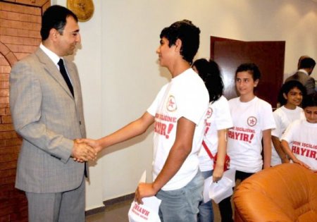 16 Haziran Dünya Çocuk İşçiliği ile Mücadele Günü etkinlikleri kapsamında Vali Yardımcısı Ahmet Dalkıran, İl Sosyal Hizmetler Müdürü Oktay Taş ile Çocuk ve Gençlik Merkezi’nde eğitim gören bir grup çocuk, Vali Mustafa Toprak’ı makamında ziyaret etti. Tüm dünyada sokakta veya iş yerlerinde çalıştırılan yaşları küçük çocukların olduğunu belirten Toprak, eğitim yuvalarında olması gereken çocukların çalıştırılmasının asla kabul edilemez olduğunu söyledi. Bu konuda devlet kadar anne ve babalara da görev düştüğünü vurgulayan Toprak, "Sadece kurumların tek taraflı tedbir almasıyla bu işin çözülmesi mümkün değil. Çocuklarını küçük yaşta çalıştıran, ilgilenmeyen anne ve babaları öncelikle ikaz etmemiz gerekiyor. Eğer bu aşamalar olmuyorsa cezai müeyyideler var. Bir de para cezasının ötesinde adli ceza hukukuna göre sonucu var ki bu da velayet hakkının elinden alınmasıdır." dedi.