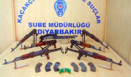 Diyarbakır’da farklı olaylarda kullanılmak üzere getirildiği tahmin edilen 6 adet Rus yapımı AK-S serisinden Kalaşnikof marka silah ele geçirildi. Silahlar, terör olaylarında kullanılıp kullanılmadığının tespiti için balistik incelemeye alındı. Bir kişi tutuklandı.