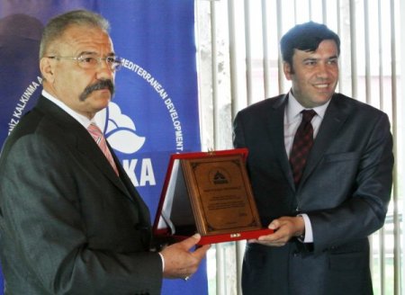 DOĞAKA Genel Sekreteri Erdoğan Serdengeçti'ye, Vali Celalettin Cerrah tarafından, yönetim kurulu adına teşekkür plaketi ve başarı belgesi verildi.