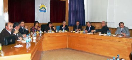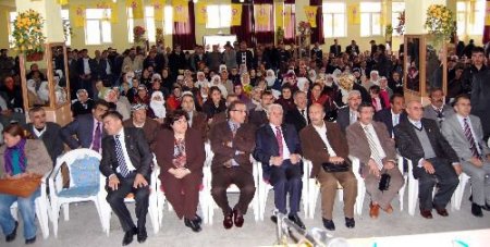 DTP Eş Başkanı Emine Ayna ve beraberindeki heyet, Tatvan Belediyesi'nden ayrıldıktan sonra halkla demokratik açılım ve Kürt sorunları ile ilgili görüş alışverişi yapmak için Tatvan Düğün Salonu'na geçti.