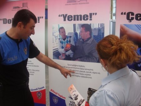 Ankara Emniyet Müdürlüğü Toplum Destekli Polis Büro Amirliği tarafından hazırlanan ve vatandaşları dolandırıcılık, hırsızlık konularında bilinçlendirmeyi amaçlayan tanıtım stantları halkın hizmetine sunuldu. ‘Bilinçli Toplum, Güvenli Yaşam’ sloganından yola çıkan uygulama çerçevesinde vatandaşlar cep telefonu veya internet üzerinden gerçekleştirilen dolandırıcılık vakalarının yanı sıra, hırsızlık, yankesicilik ATM dolandırıcılığı konularında tedbirli olmaları konularında uyarıldı.