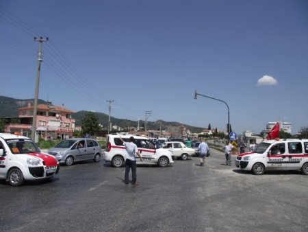 Balıkesir'in Edremit ilçesine bağlı Kadıköy beldesinde dolmuş taksiciler, Diyarbakır'ın Silvan ilçesindeki terör saldırısını protesto etmek için araçlarına Türk bayrağı asıp E-87 karayolunu trafiğe kapattı.