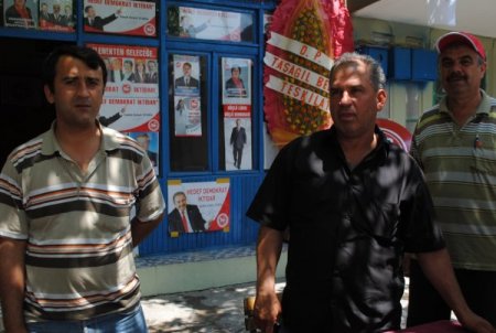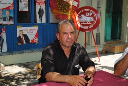 Antalya'nın Manavgat ilçesinde, Demokrat Parti (DP) belde teşkilatı, partilerini ziyarete gelen seçmene kahve ikramı yapıyor.