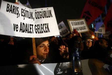 DTP'nin kapatılmasını protesto eden aralarında Özgürlük ve Dayanışma Partisi (ÖDP), Emeğin Partisi (EMEP) ve Halk Evleri'nin başkanları ve temsilcilerinin de bulunduğu yaklaşık 100 kişi Taksim Meydanı'nda eylem yaptı. Grup, mum ve fenerlerle DTP'nin kapatılmasını protesto etti. Ellerindeki fenerlerle eyleme destek veren grup üyeleri Taksim Meydanı'na mumlarla 'BARIŞ' yazdılar. 'Eşit özgür bir ülkede bir arada yaşayacağız', 'Barış kazanacak, halklar kardeş kalacak' yazılı pankart ve döviz taşıyan eylemciler 'Halklar kazanacak barış kalacak', Gün gelecek devran dönecek AKP halka hesap verecek' şeklinde slogan attı.
