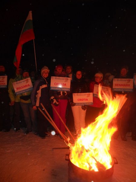 Palandöken Kayak Merkezi'ndeki Dedeman Otel önünde gerçekleştirilen seremoni öncesi, kayakçılar tarafından meşaleli kayak gösterisi sunarken, Atatürk Üniversitesi Bindallı Halk Dansları Topluluğu'da halk oyunları gösterisi yaptı. Yarışlara katılan ülkelerin sporcuları da bir geçit töreni düzenledi. Öte yandan törende konuşan Vali Sebahattin Öztürk, dünyanın her yerinden gazetecileri Erzurum’da ağırlamanın sevincini yaşadıklarını vurgulayarak, oyunları resmen açtığını duyurdu.