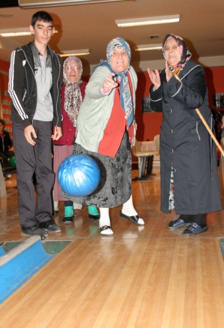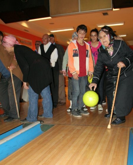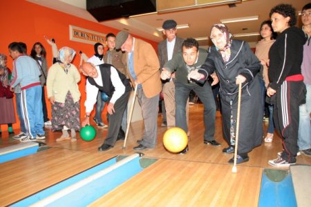 Erzincan Gençlik Spor İl Müdürlüğü Gençlik Merkezi'nin organizasyonu ile düzenlenen programa katılan yaşlılar, çocuklar gibi eğlendi. Bastonları ile bovling pistine çıkan yaşlılar labutları devirmek için mücadele etti.