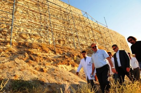 Vali Karaloğlu, beraberindeki bürokratlarıyla restorasyon çalışmalarının devam ettiği Van Kalesi’nin batı bölgesinde incelemelerde bulundu. Kültür ve Turizm Bakanlığı tarafından 1 milyon 609 bin liraya ihale edilen restorasyon çalışmaları kapsamında 650 metre sur duvarının yapıldığını belirten Karaloğlu, kaleye çıkış patika yolunun ise İl Özel İdaresi kaynaklarından yapılacağını ve bunun için de 10 gün sonra ihalesinin yapılacağını bildirdi.
