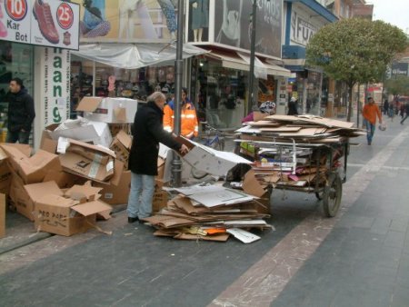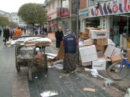 Düzce Şehir merkezi sokak ve caddelerinde çöpe atılan gazete ve ambalaj kartonlarını geçimlerini sağlamak için toplayan 60 aile ayda 100 ton kâğıt topluyor. Atık olarak çöpe atılan kâğıtları toplayıp biriktiren aileler kilosu 130 kuruştan aracılık yapan firmaya kâğıtları satıyorlar. Kâğıtları ailelerden satın alan aracı firma ise aldığı kâğıtları presleyerek fabrikaya gönderiyor. Toplanan kağıtları satın alan aracı firma sahiplerinden Mustafa Özkamış, vatandaşlardan alınan kâğıtları cinslerine göre ayrıldıktan sonra preslendiğini belirterek, "Sokaktan kağıtları toplayan bir çok aile var, bu ailelerden bizim ayrım yapmaksızın kağıdın kilosunu 130 kuruştan alıyoruz. Bizde burada bazı işlemlerden geçirdikten sonra kamyonlara yükleyerek geri dönüşüm fabrikasına 190 ila 200 lira arasında satıyoruz." dedi. Düzce’de 100 ton ortalama kağıt toplandığını ifade eden Mustafa Özkamış aracılık yapan 2 firmanın olduğunu belirtti.