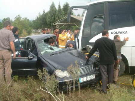 Düzce’nin Gölyaka ilçesinden saat 10.50 sıralarında il merkezine gitmekte olan Hasan Ali Yaman idaresindeki 81 CC 060 plakalı yolcu minibüsü, Gölyaka istikametine giden Mustafa Çalık idaresindeki 34 AC 0076 plakalı otomobile çarptı. Meydana gelen kazada otomobil sürücüsü araç içinde sıkıştı. Sıkışan sürücüyü Düzce Belediyesi itfaiyesine ait kaza kırım ve kurtarma ekibi uzun uğraşlar sonunda çıkardı. Yaralılar Gülfem Çalık, Şeyda Çalık, Tarık Çalık, Nergis Çalık(2), Mustafa Çalık ve Behiye Anlıaçık(82) acil servis ambulanslarıyla Düzce Atatürk Devlet Hastanesi'ne kaldırıldı.