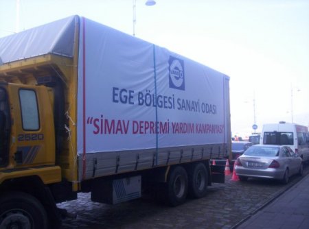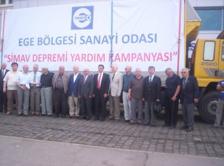 Ege Bölgesi Sanayi Odası (EBSO), Kütahya’nın Simav ilçesindeki depremde zarar görenlere yardım amacıyla sanayiciler tarafından temin edilen bir kamyon malzeme gönderdi. Kamyonun yola çıkmasından önce bir basın toplantısı düzenlendi. Topnlantıya EBSO Meclis Başkanı Mehmet Tiryaki, Başkan Vekili İbrahim Gökçüoğlu, Simavlılar Derneği Başkanı Nihat Yiğit ve üyeler katıldı.