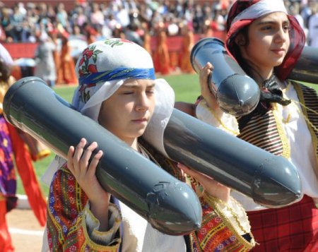 Çeşitli okullardan öğrencilerin 23 Nisan Ulusal Egemenlik ve Çocuk Bayramı konulu şiirlerin okunmasından sonra okulların resmi geçişi yapıldı. Yıl içinde çeşitli alanlarda derece alan öğrencilere protokol tarafından ödüller verildi. Tören halk oyunları gösterisiyle sona erdi.