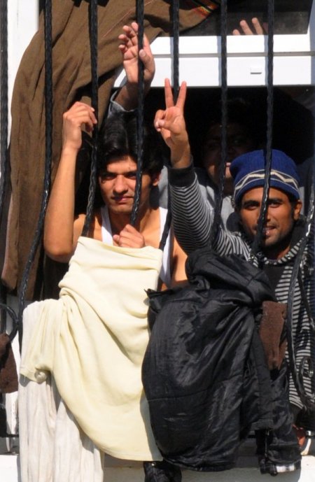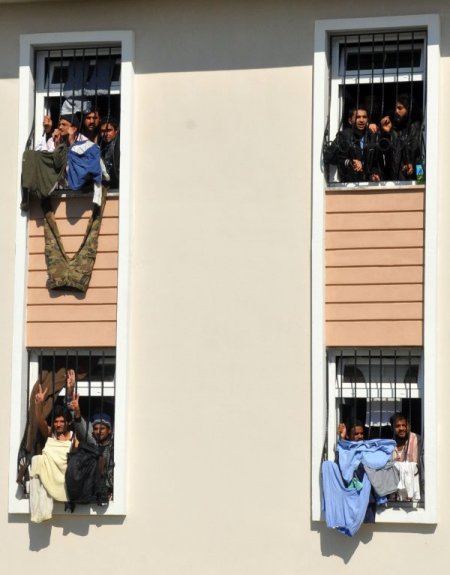 Eylemciler, çeşitli dillerde hazırlıkları afişleri barınmaevinin dış duvar demirlerine astı. Polisin uyarısı ile afiş asıldığı yerden kaldırıldı. Basın açıklamasının ardından kaçaklar için Türkçe, İngilizce ve Fransızca 'Özgürlük' sloganı atıldı. Barınmaevinde kalan çok sayıda kaçak, demir parmaklıklarla çevrili pençelere çıkarak zafer işareti yaptı. İçeriden kaçaklar, dışarıdan ise eylemciler karşılıklı slogan attı. Grup daha sonra olaysız bir şekilde dağıldı.