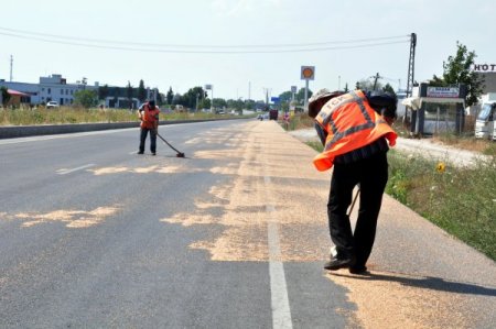 Yolda herhangi bir tehlikenin yaşanmaması için trafik ekipleri güvenlik önlemi aldı. Daha sonra buğdayın yoldan alınması için Karayolları ekiplerinden yardım istendi. Ekiplerin yaklaşık 2 buçuk saat süren çalışmaları sonucunda yola dökülen buğdaylar temizlendi. Olayla ilgili olarak sürücüye cezai işlem uygulandı.