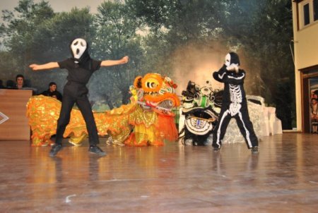 23 Nisan Ulusal Egemenlik ve Çocuk Bayramı kutlama programının en ilgi çeken bölümü ise öğrencilerin hazırladığı iki ejder figürü ve iskelet şeklindeki kıyafetleriyle Apaçi dansı yapan ekibin gösterisi oldu.