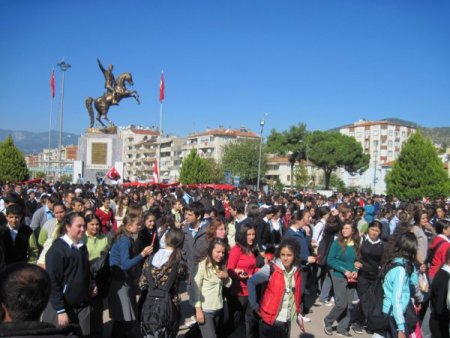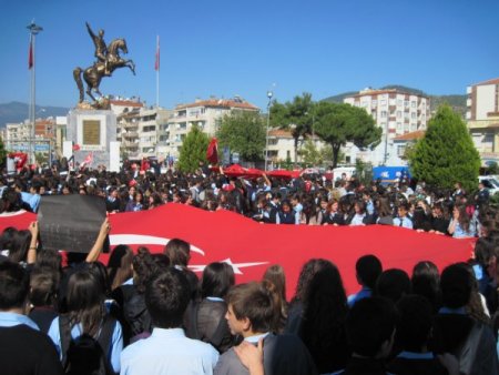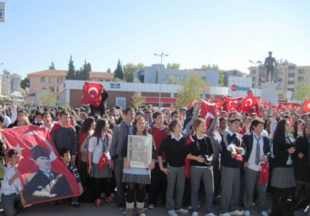 Türk Bayrakları yürüyüş yapan liseli gençler bir dakikalık saygı duruşu ve İstiklal Marşı’nın okunmasının ardından "Kahrolsun PKK", "Şehitler ölmez, vatan bölünmez", "Hepimiz Türk’üz, hepimiz Mehmet’iz", Mustafa Kemalin Askerleriyiz” diye slogan attı. Grup, daha sonr olaysız bir şekilde dağıldı.