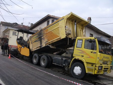 Karabük'ün Eflani ilçe merkezinden geçen kara yolu sıcak asfalt ile kaplandı.