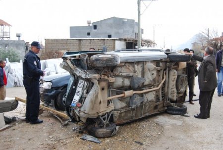 Edinilen bilgiye göre Ağlıboğaz Caddesi üzerinde Ahmet Ataş’ın kullandığı 01 RY 620 plakalı otomobil park halinde duran 01 D 7002 plakalı otomobile çarparak takla attı.