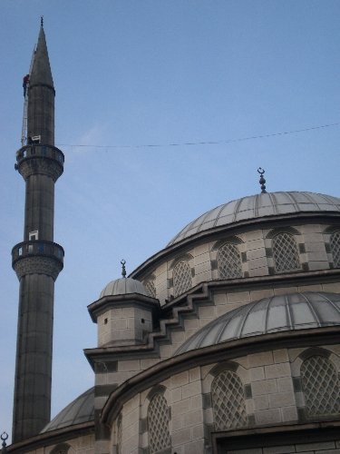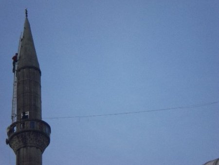 Trabzon Akçaabatlı Güngör Altuntaş (34) ve Orhan Sürü (28) adındaki iki arkadaş, minareler üzerinde çalışarak geçimlerini sürdürüyor.