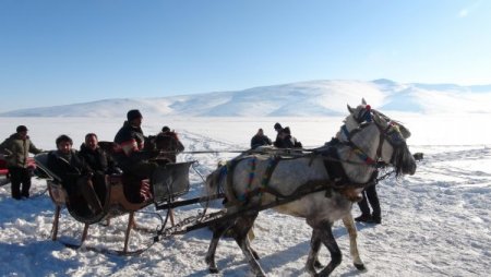 Çıldır Gölü'nün yüzeyinde soğuklardan dolayı 80 santimetrelik buz tabakası oluştu. Gölü ziyaret eden yerli ve yabancı turistlerin en büyük eğlencesi ise atlı kızak keyfi.