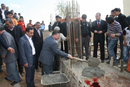 Temel atma törendi vatandaşlardan bağış yapmaları istendi. Yarım saat süren bağış kampanyasında kum, çimento, demir gibi ayni yardımların yanında nakdi bağışlar da yapıldı.