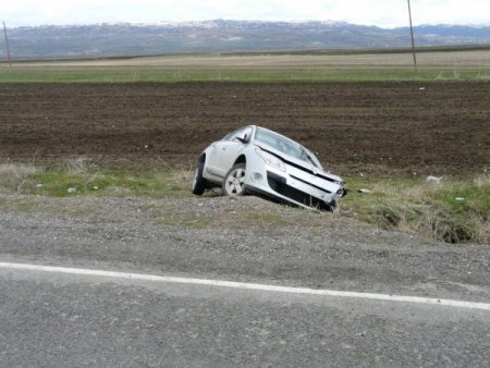 Ağrı'dan Erzurum'a doğru seyir halinde olan Mustafa Özkan (34) yönetimindeki 04 AF 838 plakalı özel otomobil, Eleşkirt ilçe girişindeki Sadaklı köyü yol ayrımında şarampole yuvarlandı. Araç sürücüsü Mustafa Özkan'ın eşi Emine Özkan (37) olay yerinde hayatını kaybetti. Araçta bulunan Özkan'ın çocukları Özgün (9), Deniz (3) Özkan ile Serap Uculu (31) ve Cesim Avşin (37) yaralandı. İlk tedavileri Eleşkirt Devlet Hastanesi'nde yapılan yaralılar, ardından Ağrı Devlet Hastanesi'ne sevk edildi. Durumu ağır olan Uzman Dr. Mustafa Özkan, daha sonra Sağlık Bakanlığı'na ait helikopterle Erzurum Bölge Eğitim ve Araştırma Hastanesi'ne götürüldü. Uzman Dr. Serap Uculu'nun Sağlık Bakanlığı'na bağlı ambulans uçakla Ankara'ya sevk edileceği bildirildi.